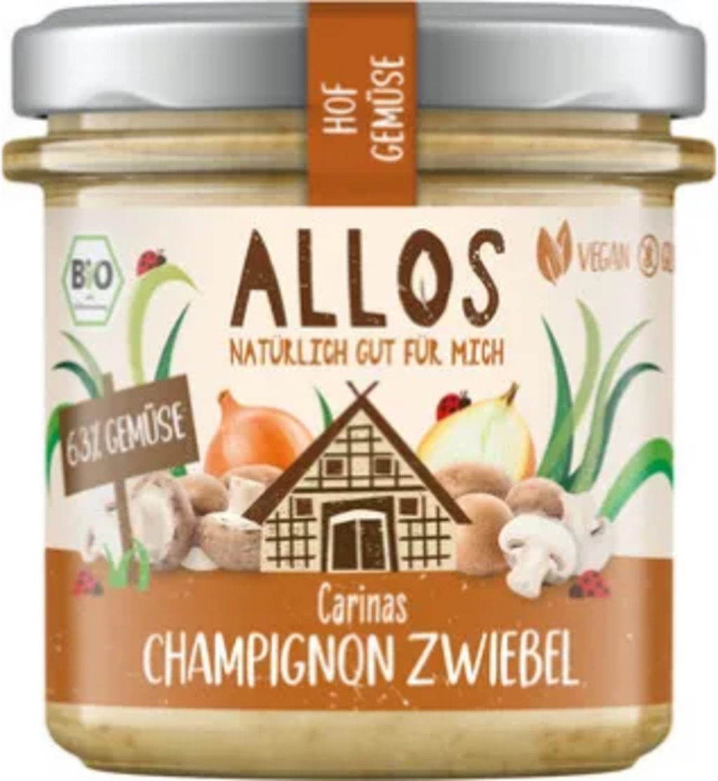 La combinazione di funghi champignon e cipolla conferisce a questa crema spalmabile un sapore molto aromatico e unico. La variante Champignon e Cipolle di Carina non entusiasma solo i vegetariani e i vegani ma conquista tutti con il suo alto contenuto di verdure del 63%.