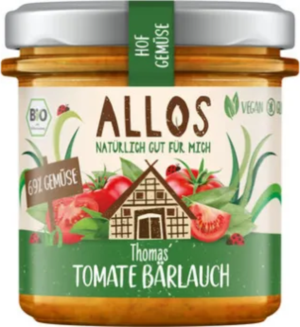 La crema spalmabile con pomodoro e aglio orsino della linea Verdure dell'Orto Bio di ALLOS contiene ben il 69% di verdure e ti permette di assaporare la meravigliosa freschezza dell'aglio orsino in ogni boccone. Una delizia vegana perfetta da gustare sul pane.