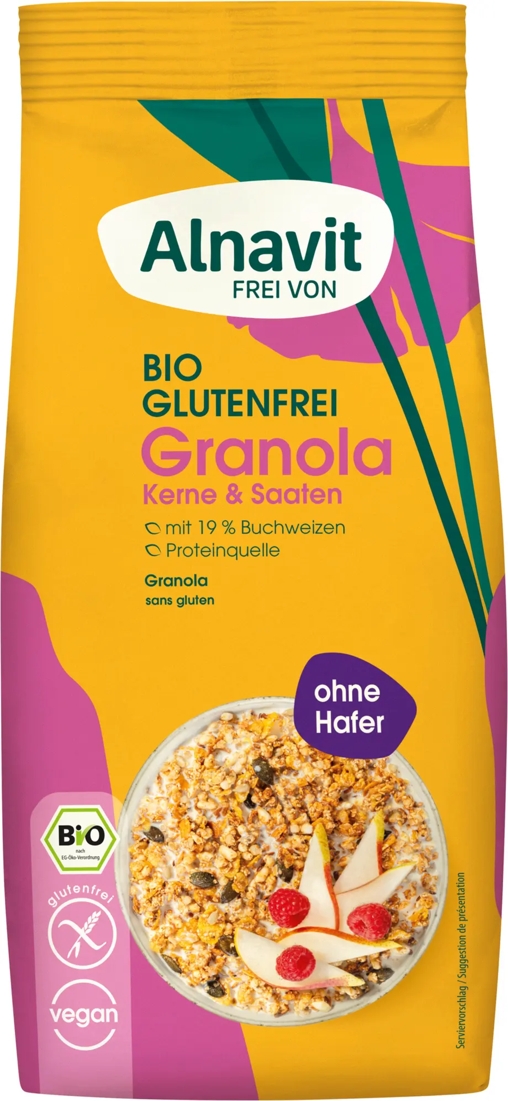 19 % fiocchi di grano saraceno[1], sciroppo di riso[1], 14 % fiocchi di soia[1], olio di semi di girasole[1], zucchero di barbabietola[1], cornflakes[1] (mais[1], antiagglomerante (lecitina[1])), riso soffiato[1], semi di girasole[1], amaranto soffiato[1], semi di lino[1], semi di chia[1] (Salvia hispanica), semi di zucca[1], farina integrale di riso estrusa[1], sesamo[1], sale marino