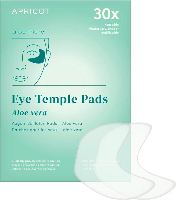 I pad per occhi e tempie all'aloe vera di APRICOT sono particolarmente indicati per la pelle secca e sensibile del contorno occhi. L'aloe vera biologica di alta qualità nutre intensamente la pelle e fornisce un'idratazione essenziale. I pad sono realizzati in silicone di grado medicale e possono essere riutilizzati fino a 30 volte.
