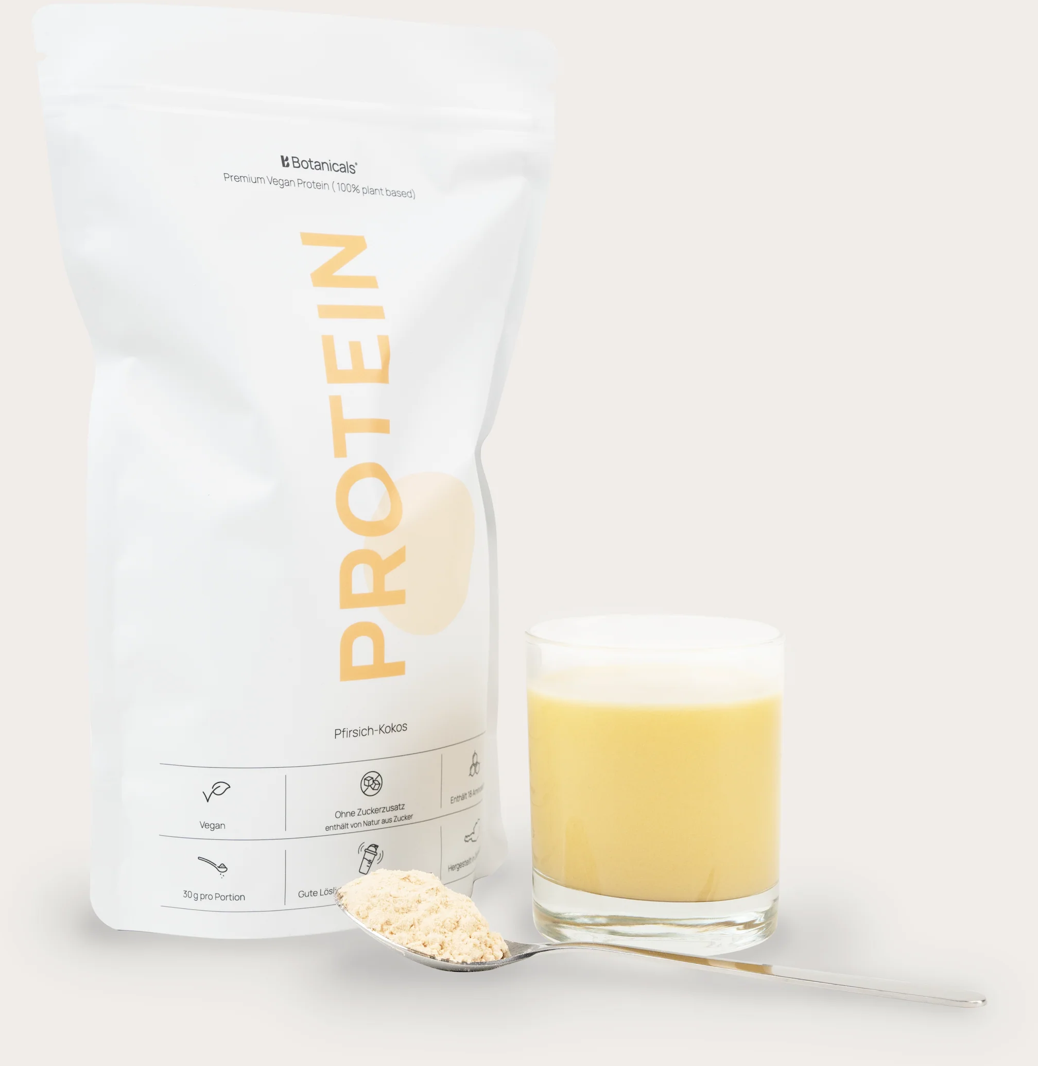 Scopri Vegan Premium Protein di Botanicals®, una fonte proteica puramente vegetale contenente tutti gli amminoacidi essenziali. Con un elevato contenuto proteico e fibre preziose, supporta in modo ottimale il tuo stile di vita attivo. La sua consistenza cremosa e il gusto delizioso la rendono l'aggiunta perfetta a frullati, smoothie, yogurt o porridge. Senza glutine, lattosio e zuccheri aggiunti (*contiene zuccheri naturalmente presenti), è ideale per una dieta sana.