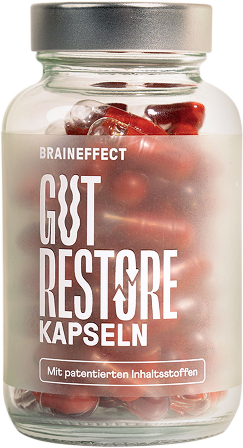 Le capsule Gut Restore di BRAINEFFECT contengono un mix di ceppi di Lactobacillus e Bifidobacterium. In totale apportano 35 miliardi di batteri vivi. Le capsule contengono inoltre niacina, nota anche come vitamina B3. Per proteggere gli ingredienti, le capsule Gut Restore sono dotate di un sistema di doppia incapsulazione, che aiuta i batteri ad arrivare integri nell'intestino.