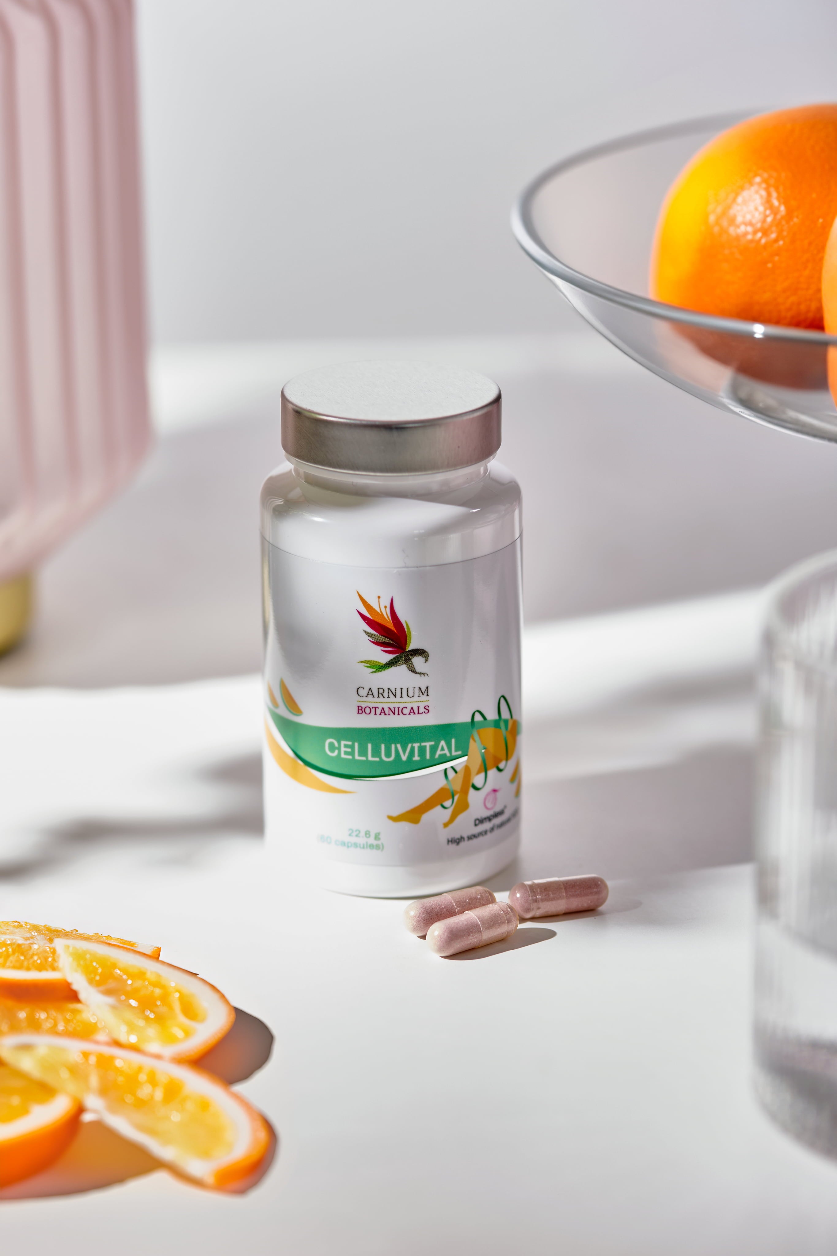 Le capsule Celluvital di Carnium Botanicals contengono estratti di uva rossa e melone, oltre a zinco e rame. La formulazione è completamente vegana e priva di conservanti.