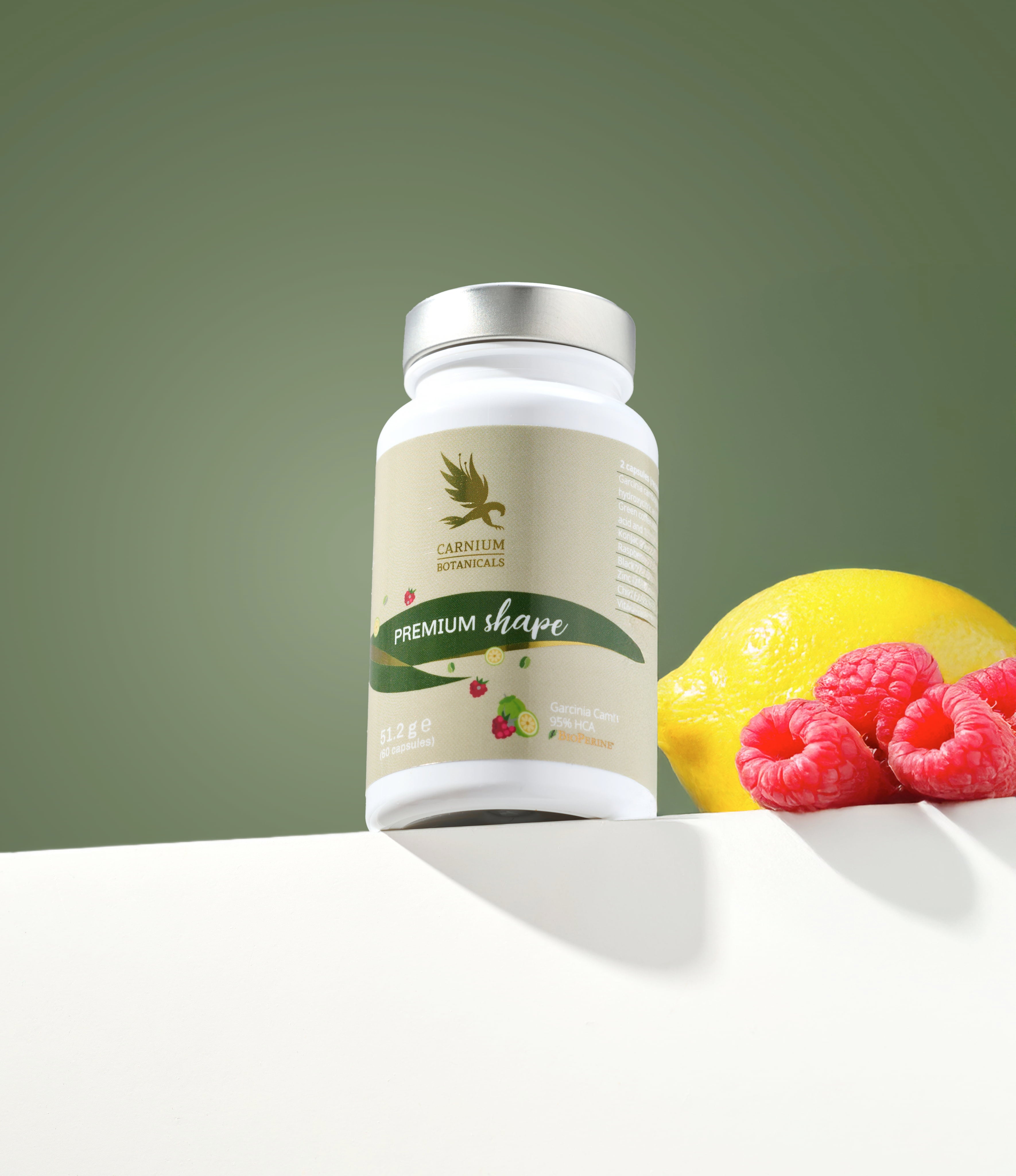 Le capsule Premium Shape di Carnium Botanicals contengono estratti di pepe nero e lampone, oltre a vitamine e minerali. La formulazione è vegana e priva di conservanti.
