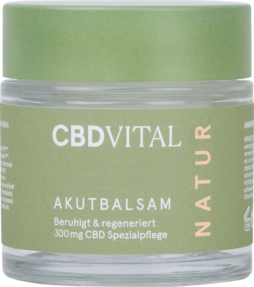 Il balsamo Acute CBD VITAL è una formula di alta qualità per le aree sensibili, ideale in caso di irritazione da agenti esterni e pelle stressata. La composizione combina ingredienti vegetali selezionati come cannabidiolo attivato (CBD), estratto di calendula, olio di semi di canapa, olio di enotera, estratto di rosmarino e vitamina E. La ricca texture è piacevole da applicare e lascia la pelle morbida e idratata.