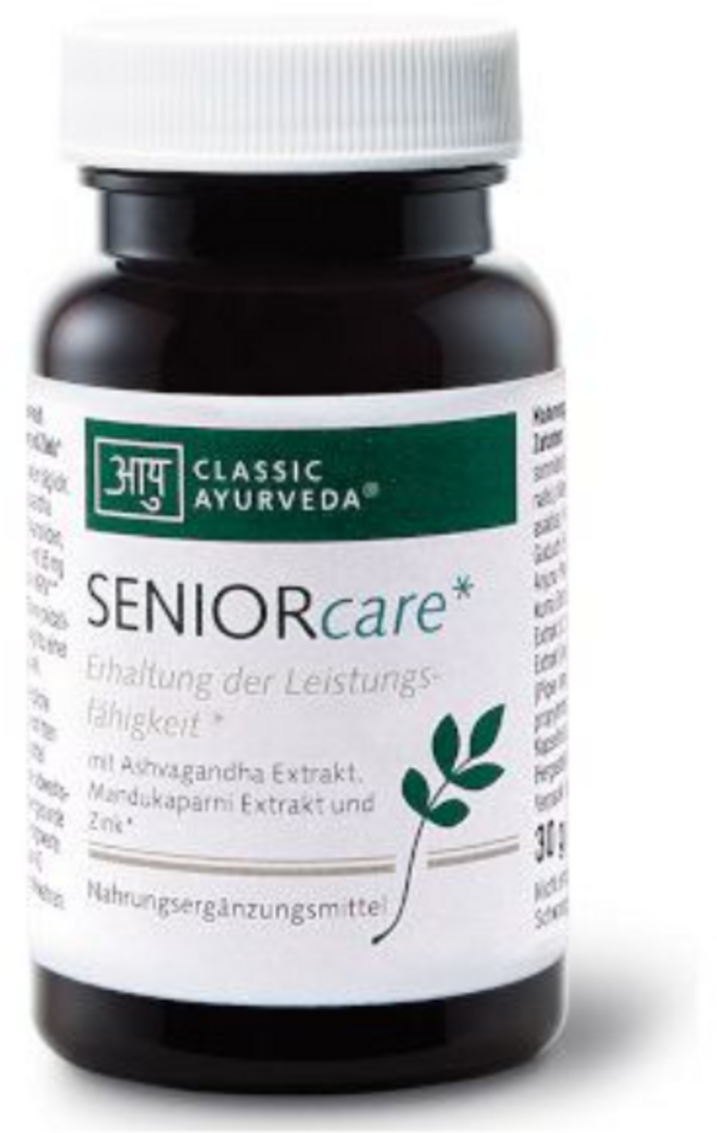 Le capsule SENIORcare di Classic Ayurveda combinano il microelemento zinco con una varietà di estratti vegetali tradizionali. La formulazione comprende Ashvagandha, Mandukaparni e Tulsi, oltre ad Arjuna, curcuma e Guggulu. Questa composizione è completata da Shilajit, Amla e dalle spezie Trikatu Pippali, pepe e zenzero.