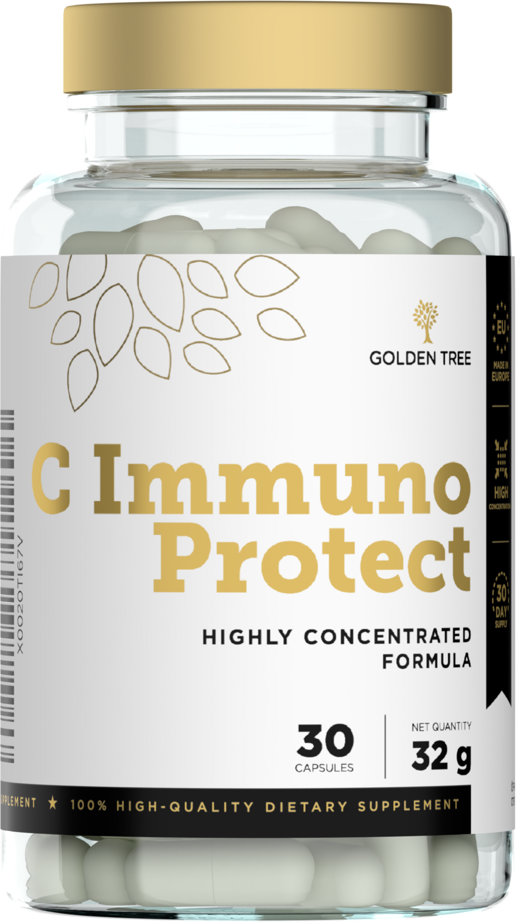 C ImmunoProtect di Golden Tree è un integratore ad alto dosaggio di vitamina C in pratiche capsule per l’assunzione quotidiana. Ogni capsula apporta 1000 mg di vitamina C, pari alla dose giornaliera raccomandata.