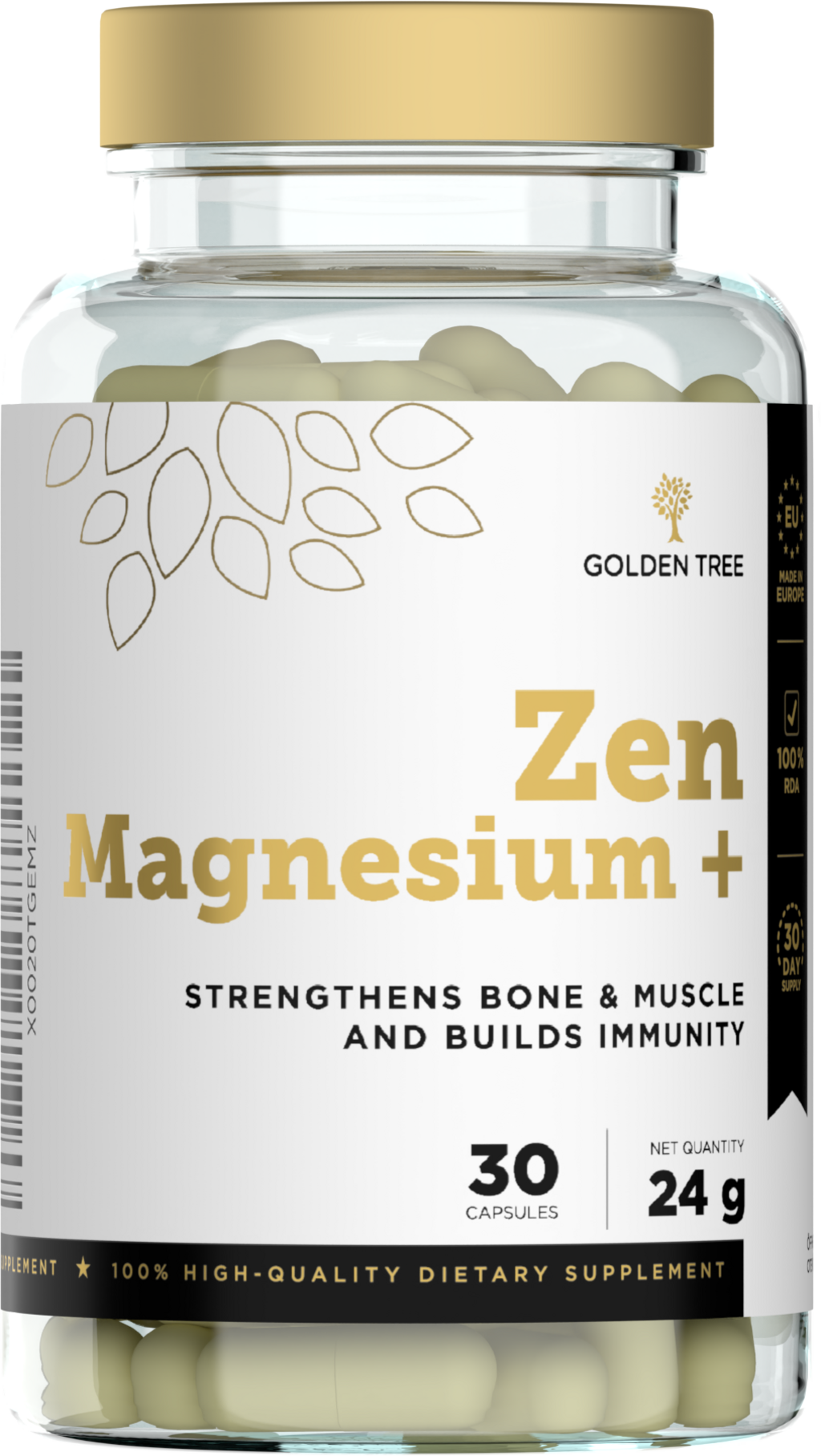 Con una sola capsula di Zen Magnesium + di Golden Tree si copre il 100 % della dose giornaliera raccomandata. Il magnesio è un minerale essenziale che contribuisce, tra l’altro, al normale metabolismo energetico e alla normale funzione muscolare. Inoltre può aiutare a ridurre stanchezza e affaticamento.