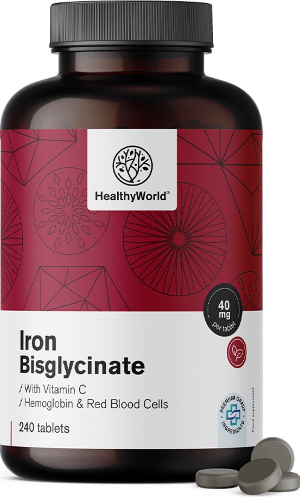 HealthyWorld Bisglicinato di Ferro con Vitamina C, 240 compresse