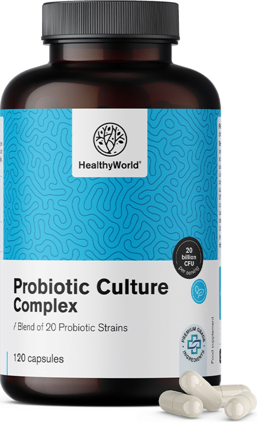 Questo prodotto contiene una miscela di 20 diverse colture microbiologiche, che forniscono complessivamente fino a 20 miliardi di unità formanti colonia (UFC) per dose giornaliera. La miscela è completata dal prebiotico inulina.