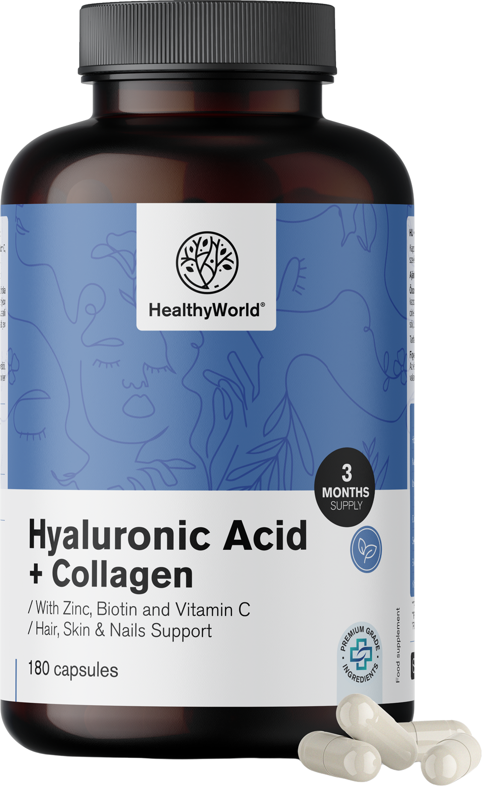 HealthyWorld Complesso di Collagene e Acido Ialuronico, 180 capsule