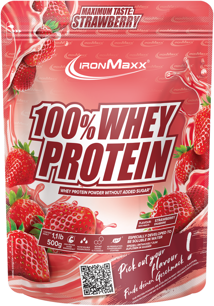 ironMaxx 100% Whey Protein - Sacchetto da 500g, Fragola (500 g)