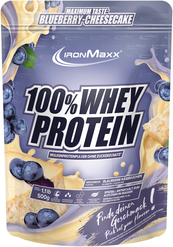 ironMaxx 100% Whey Protein - Sacchetto da 500g, Cheesecake al mirtillo (500 g)