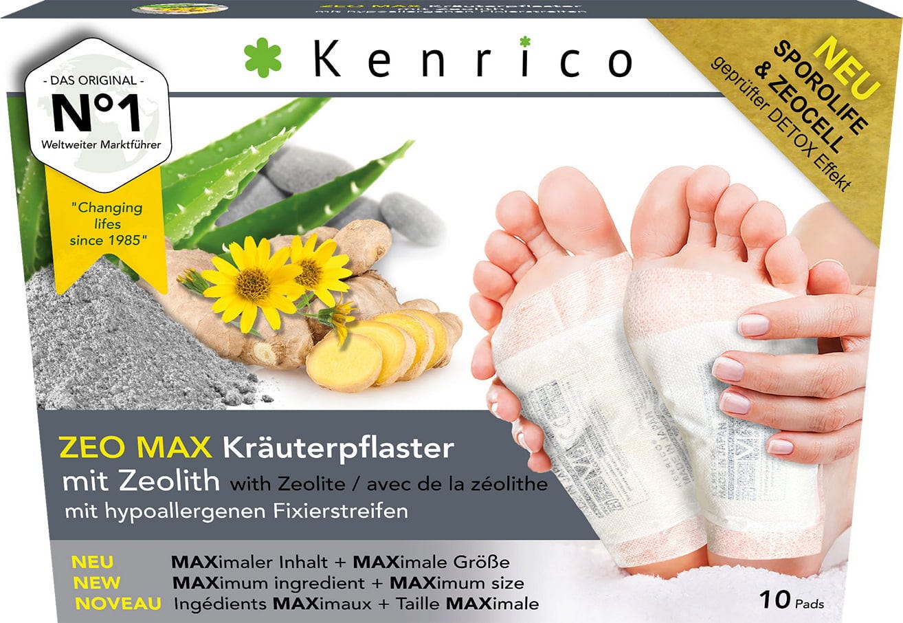 Il cerotto a base di erbe ZEO MAX con zeolite attivata colpisce per la sua formula speciale e la sua capacità particolarmente elevata, pari a 17 g per cerotto. Progettato per l'uso sulla pianta dei piedi, il cerotto può essere applicato facilmente durante la notte. Ingredienti di alta qualità, puramente vegetali, e l'ingrediente brevettato Sporolife®, derivato dalla formula Kenrico®, sono le caratteristiche distintive di questo prodotto.