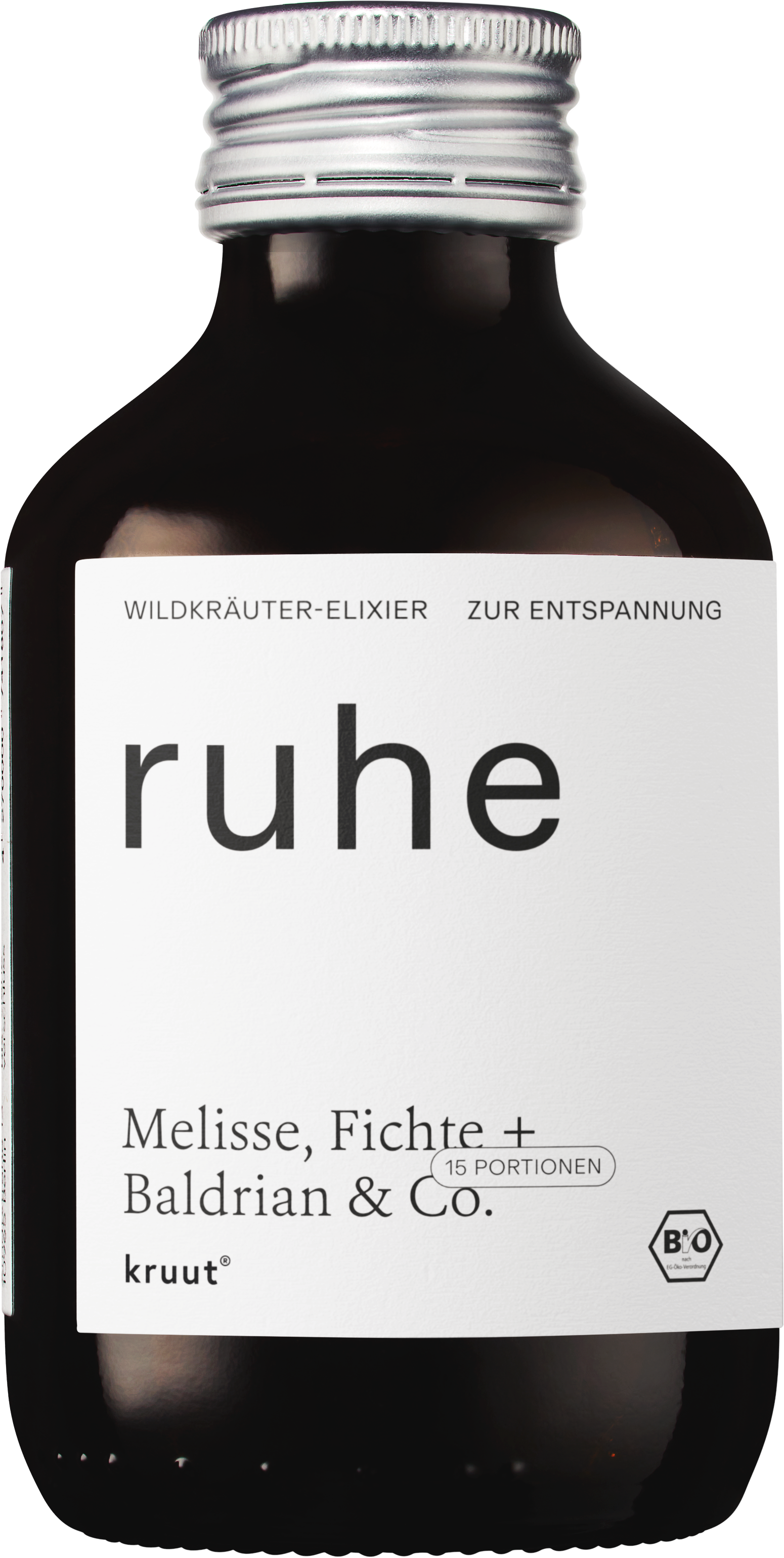 Oxymel Ruhe di kruut combina melissa, erba d'avena, radice di valeriana e germogli di abete rosso. Questa varietà è ideale da assumere prima di coricarsi o durante la meditazione.