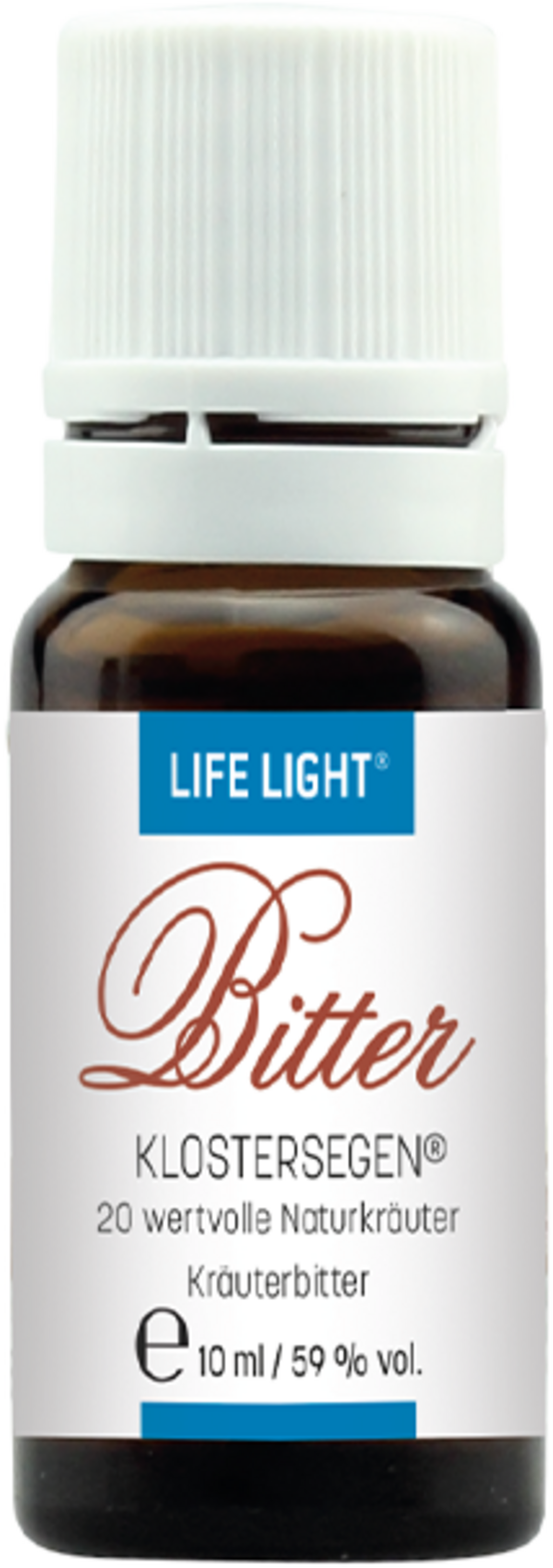 Nota: il Bitter Klostersegen è un liquido da limpido a leggermente torbido. Con il passare del tempo può verificarsi una leggera flocculazione. Questo effetto non ha alcuna influenza sull'alta qualità del prodotto.