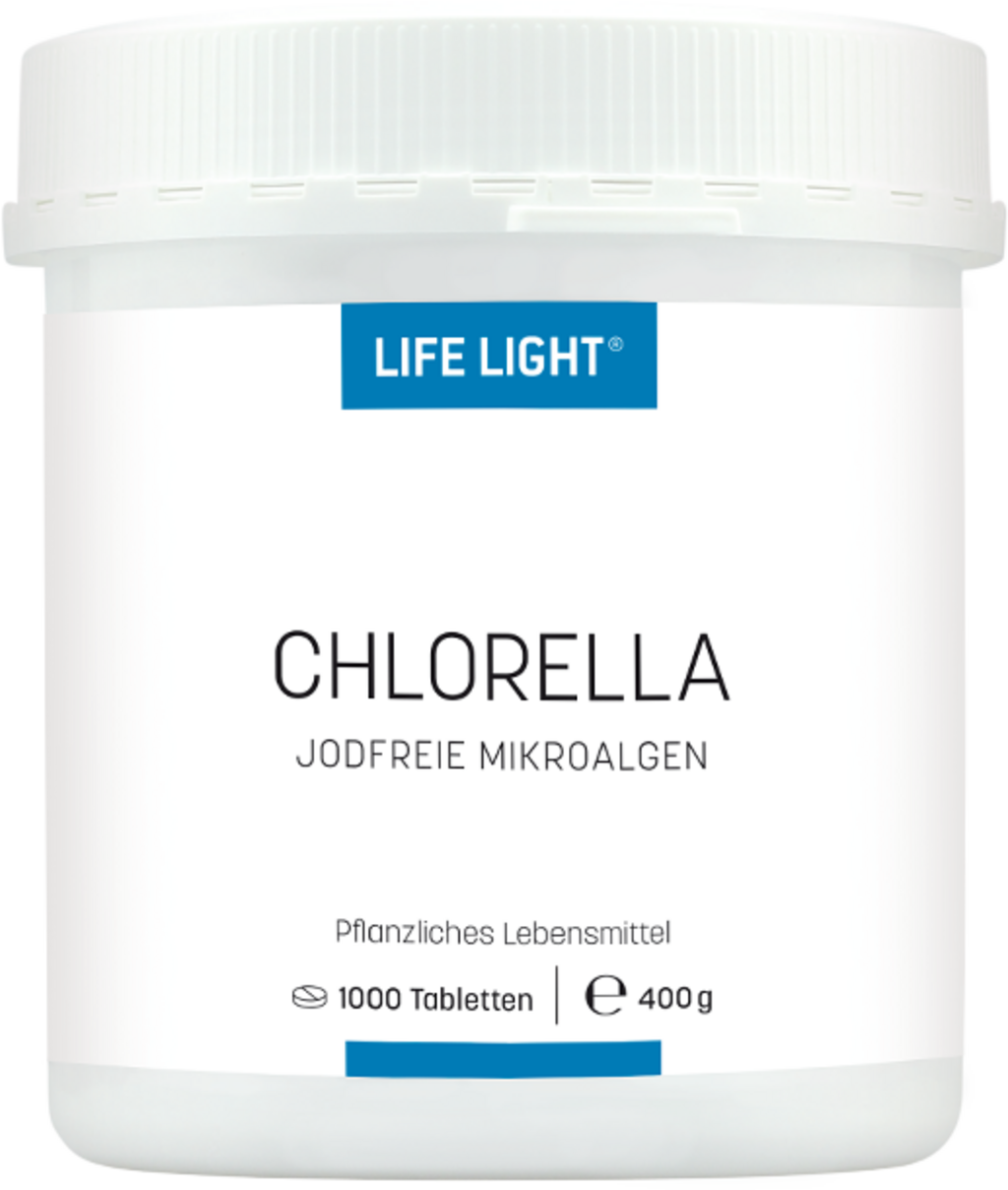Le compresse Clorella di Life Light® sono realizzate con microalghe d'acqua dolce (Chlorella vulgaris) di alta qualità, prive di iodio e con clorofilla legata organicamente. Le compresse sono adatte all'uso quotidiano e possono essere integrate nella dieta a lungo termine.