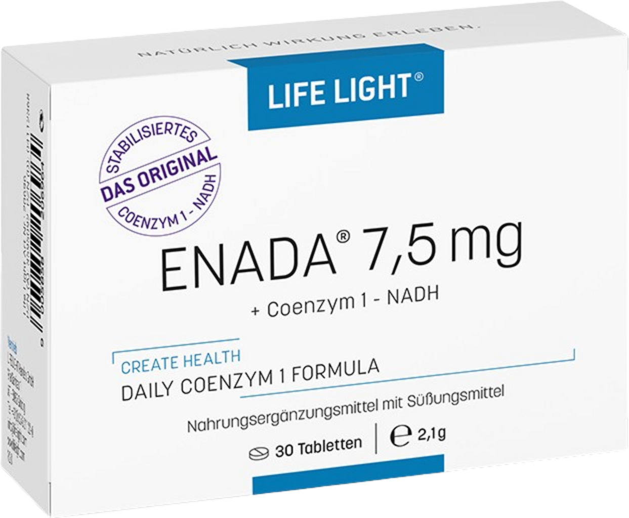 Il coenzima 1 ENADA contiene NADH (nicotinamide adenina dinucleotide idruro), una sostanza prodotta naturalmente dall'organismo e coinvolta in numerosi processi enzimatici nelle cellule.