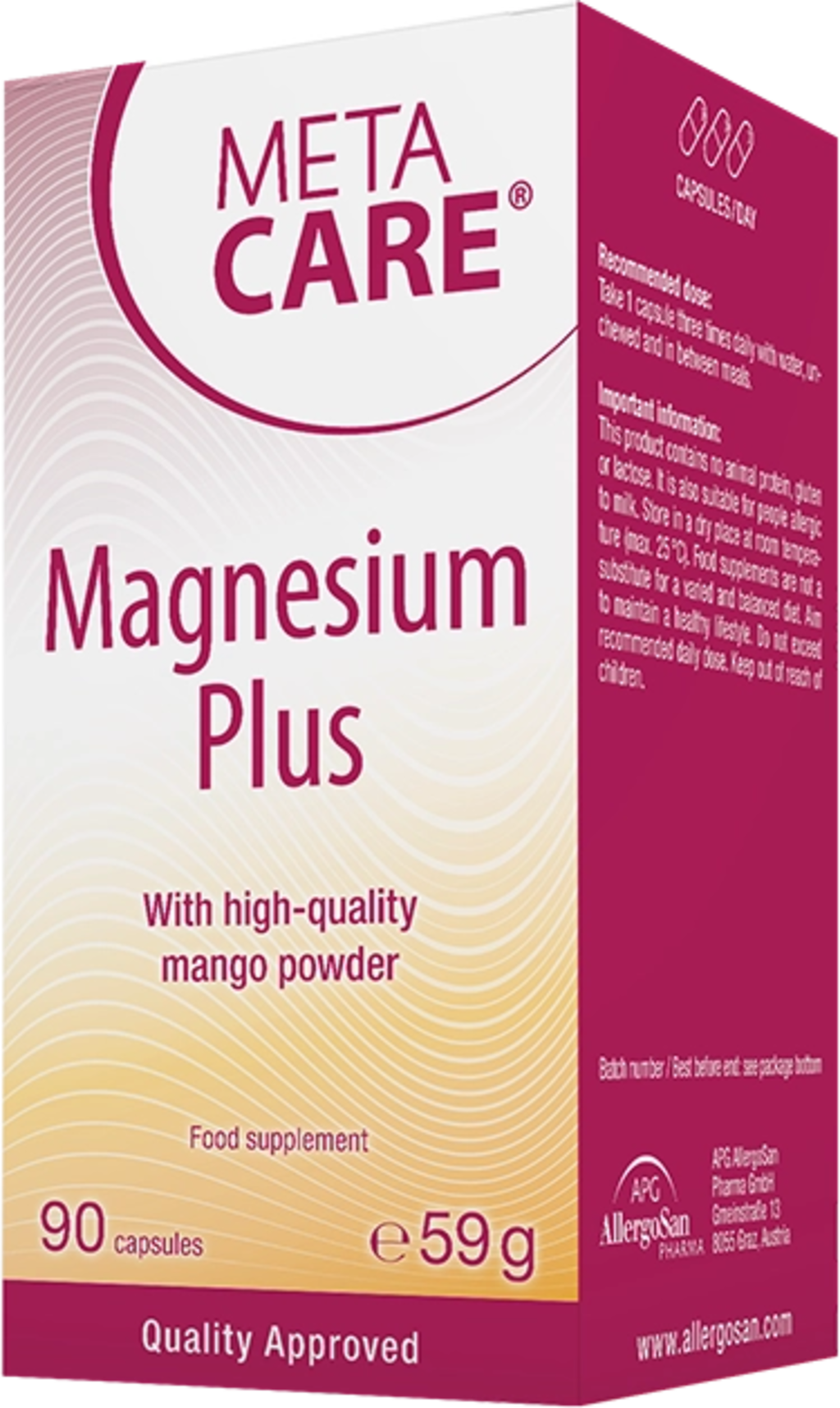 Le capsule META-CARE® Magnesium Plus rappresentano un integratore ideale per sportivi e persone attive. Le capsule vegane contengono magnesio organico, polvere di frutto di mango di alta qualità e vitamina D3.