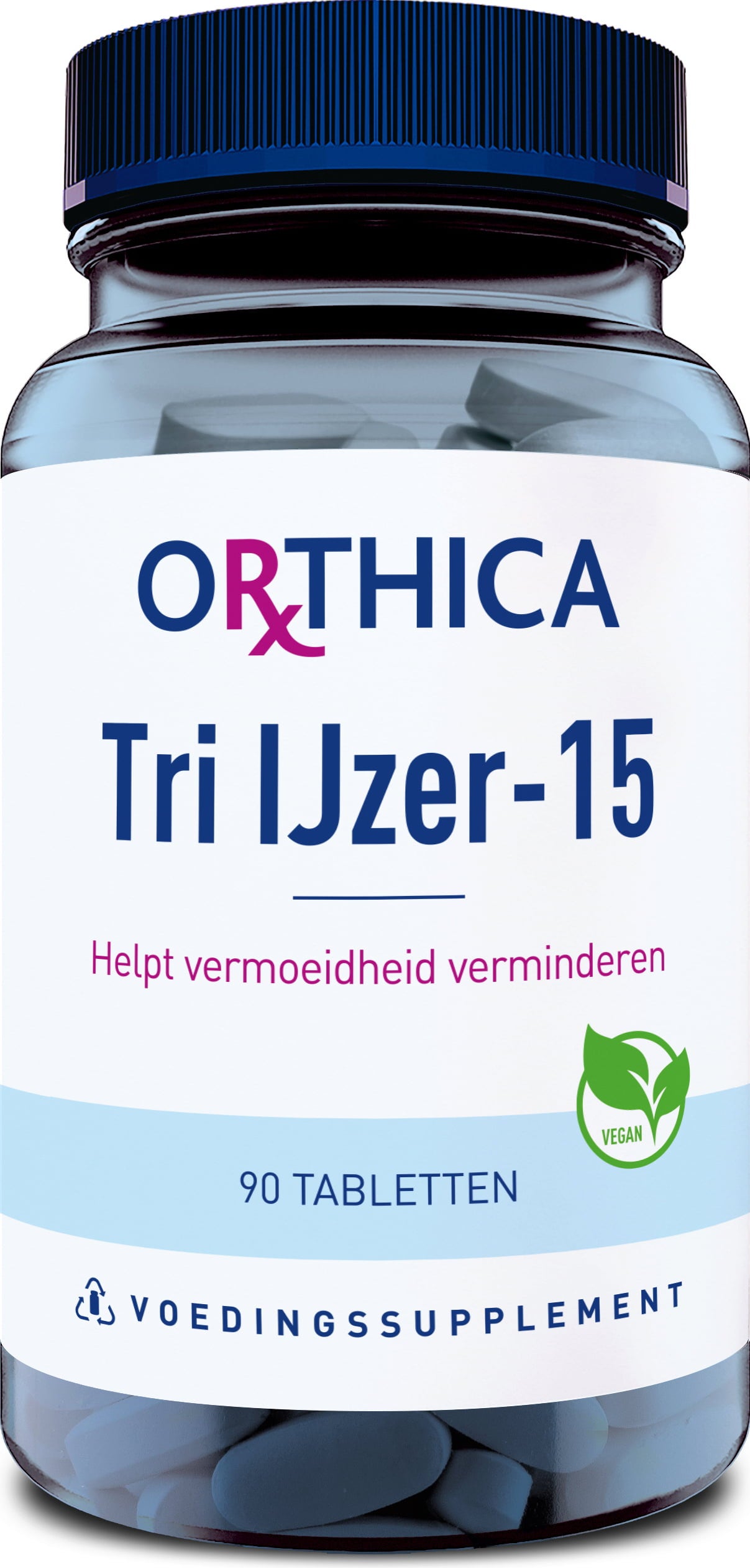 Tri Ijzer - 15 fornisce 15 mg di ferro per compressa da tre diversi composti del ferro: bisglicinato ferroso, fumarato ferroso e ferro carbonile (Ferronyl®). La formula è integrata con 80 mg di vitamina C per migliorare l'assorbimento del ferro. Il prodotto è vegano, senza glutine, senza lattosio, senza soia e senza additivi artificiali.