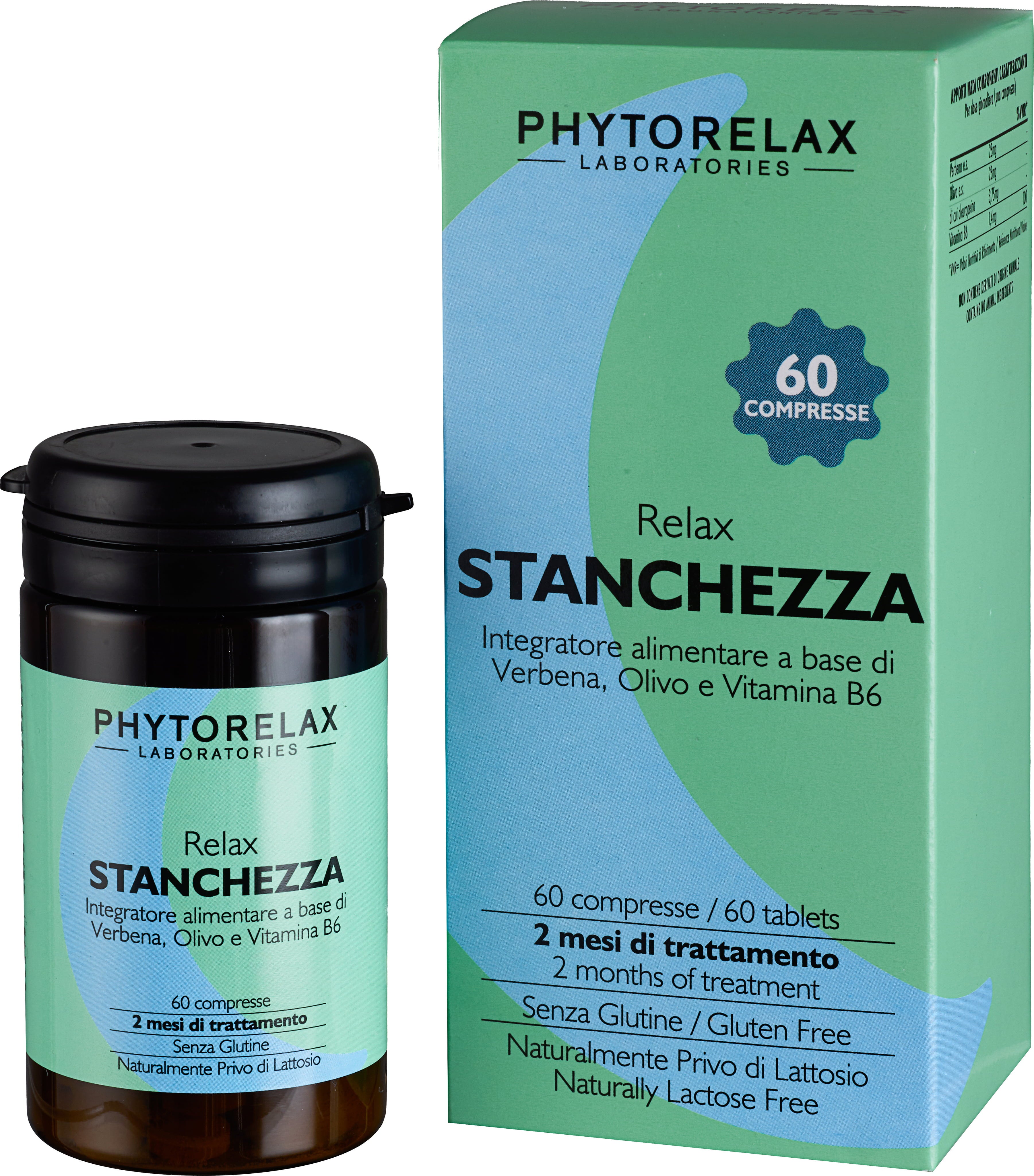 Relax Stanchezza di Phytorelax è un integratore alimentare in forma di compressa, a base di verbena, estratto di foglie di olivo e vitamina B6. La formulazione è volutamente essenziale e priva di additivi superflui, senza glutine e lattosio, facile da utilizzare e ideale da integrare nella routine quotidiana.