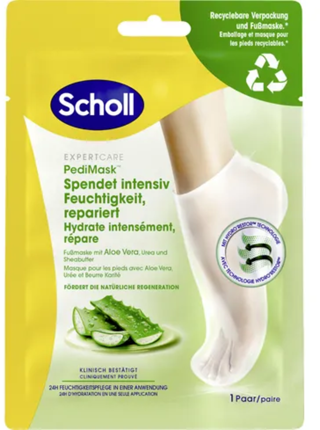 La maschera per i piedi con aloe vera della linea ExpertCare fornisce una cura ricca per i tuoi piedi e idrata intensamente la pelle. La maschera per i piedi è inoltre arricchita con urea, glicerina e burro di karité.