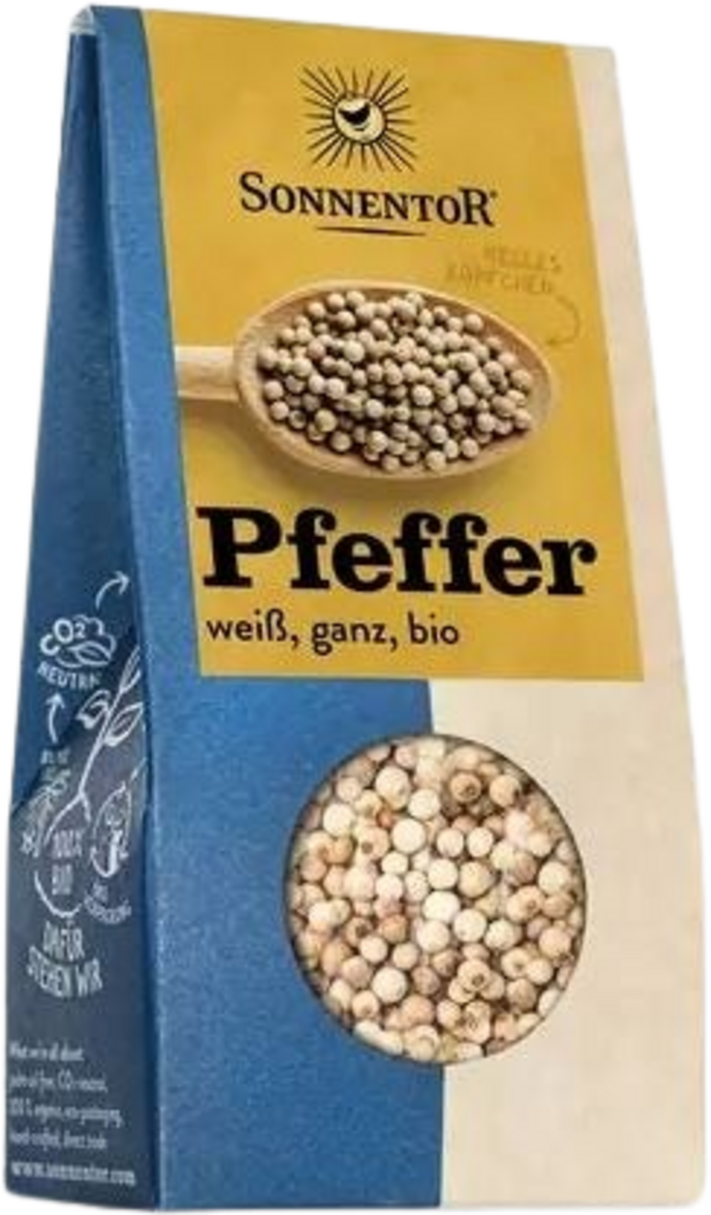 Per ricavare il pepe bianco, viene usato il pepe nero, il quale viene immerso in acqua per circa una settimana. Il guscio esterno, chiamato mesocarpo, si disintegra e si separa dall'endocarpo. Il pepe bianco contiene quindi tutti la piccantezza del pepe nero ma è meno aromatico.