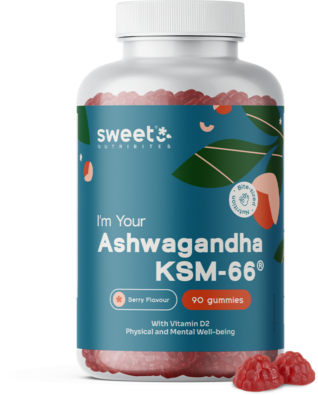 Queste gommose di Sweet Nutribites sono adatte all'integrazione alimentare quotidiana grazie al loro gradevole gusto fruttato ai frutti di bosco. Contengono un estratto brevettato della radice di ashwagandha denominato KSM-66, particolarmente apprezzato per l’elevata concentrazione di principi attivi. Le gommose sono prive di gelatina e contengono esclusivamente aromi e coloranti naturali.
