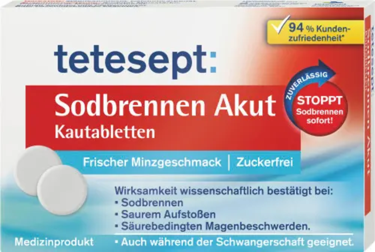 tetesept Bruciore di Stomaco Acute, 20 compresse masticabili