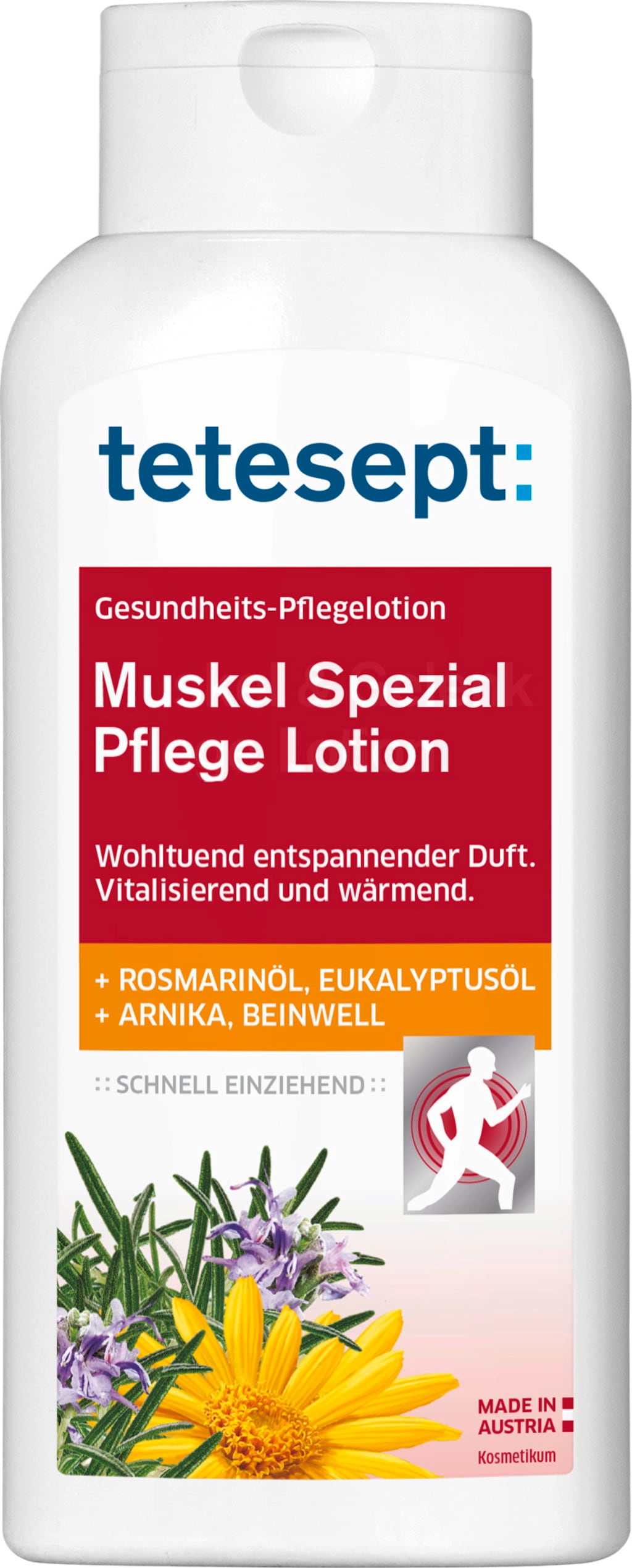 La Lozione Speciale per i Muscoli di tetesept con La formula brevettata NutriBion® fornisce ai muscoli un delicato effetto riscaldante. È ideale per l'uso dopo l'esercizio fisico o uno sforzo fisico.